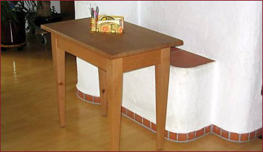 Apfelbaum mit gedrechselten Füßen und einer integrierten Tischplatte zum