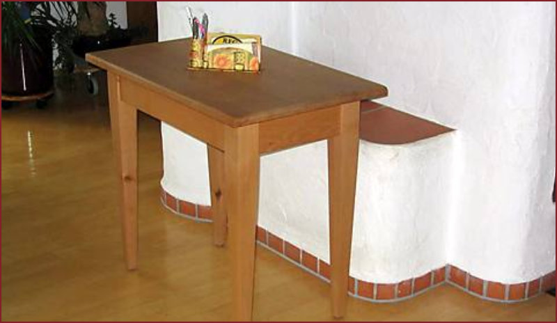 dicke Tischplatte, die zu den Rändern hin abgeplattet ist.